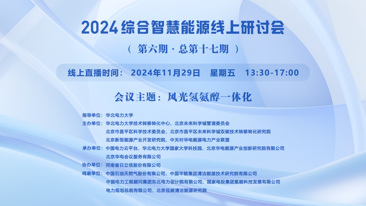 2024年綜合智慧能源線上研討會(huì)(第六期·總第十七期)【講座時(shí)間】2024年11月29日 【講座地點(diǎn)】https://wlwth.xetlk.com/sl/PZGlE 聯(lián)系人:雷捷婷 15301327986 【主講人】 1、我國(guó)氫能產(chǎn)業(yè)現(xiàn)狀與發(fā)展趨勢(shì) 龍望成 電力規(guī)劃總院能源融合三處副處長(zhǎng) 2、氣體傳感器在制氫系統(tǒng)中的安全應(yīng)用 赫樹開 ...主講人:龍望成、赫樹開、孫流莉、徐曉穎、張暢、趙宏鵬、王月時(shí)間:2024-11-29 13:30地點(diǎn):線上講座 -