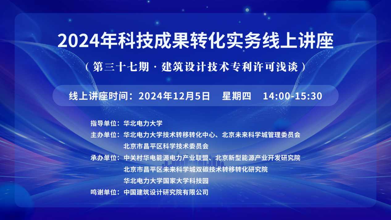 2024年科技成果轉(zhuǎn)化實(shí)務(wù)線上講座(第三十七期)【講座主題】建筑設(shè)計(jì)技術(shù)專利許可淺談 【講座時(shí)間】12月05日 【講座地點(diǎn)】https://wlwth.xetlk.com/sl/1pEEY7 聯(lián)系人:李曉婉 13311276132 【主講人】 王巖,中國(guó)建筑設(shè)計(jì)研究院有限公司科研與標(biāo)準(zhǔn)管理部副主任 【主講人簡(jiǎn)介】 王巖,中國(guó)建筑設(shè)計(jì)研究院...主講人:王巖時(shí)間:2024-12-05 16:28地點(diǎn):線上講座 -