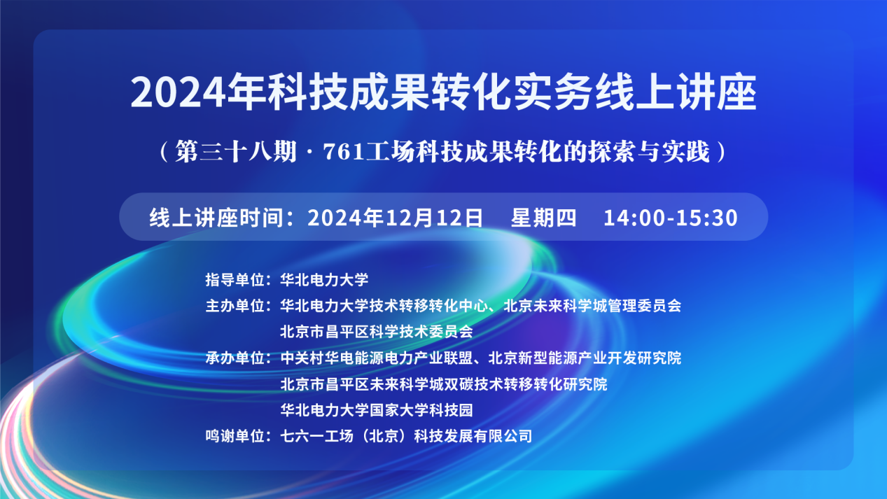 2024年科技成果轉(zhuǎn)化實(shí)務(wù)線上講座(第三十八期)【講座主題】761工場(chǎng)科技成果轉(zhuǎn)化的探索與實(shí)踐 【講座時(shí)間】12月12日 【講座地點(diǎn)】https://wlwth.xetlk.com/sl/4hxA6S 聯(lián)系人:吳燃 17310277950 【主講人】 夏文歡 七六一工場(chǎng)(北京)科技發(fā)展有限公司總經(jīng)理 【主講人簡(jiǎn)介】 夏文歡,北京電子控股7...主講人:夏文歡時(shí)間:2024-12-12 14:00地點(diǎn):線上講座 -